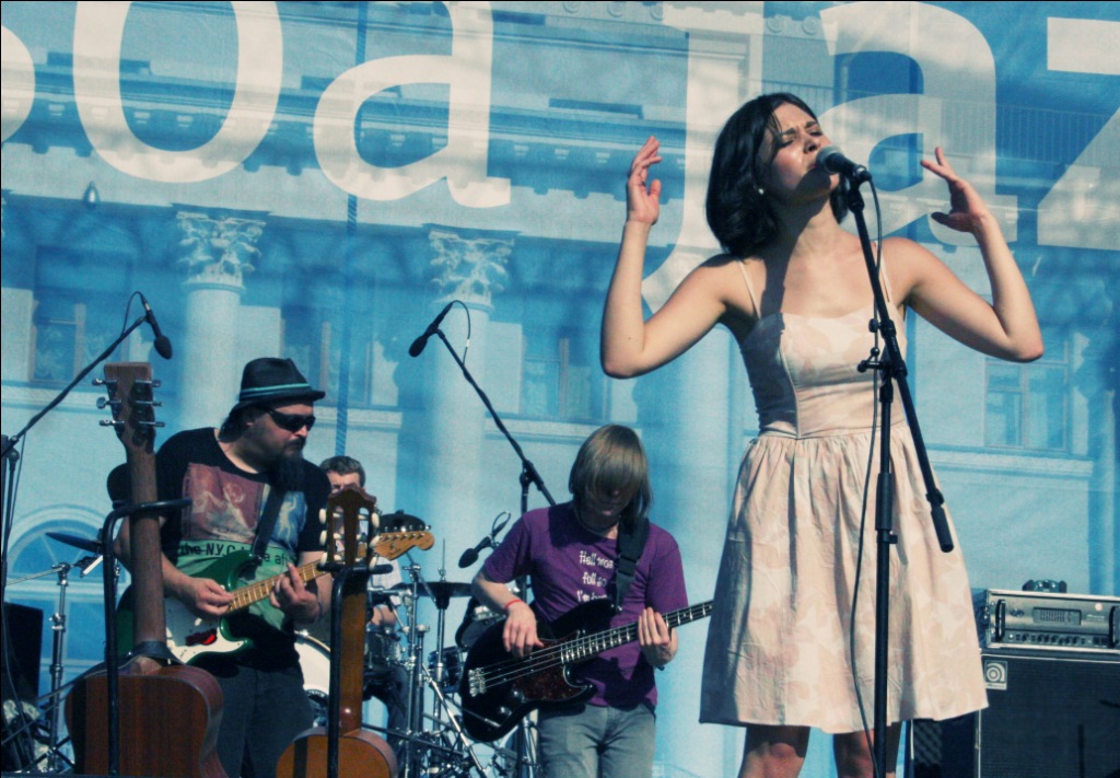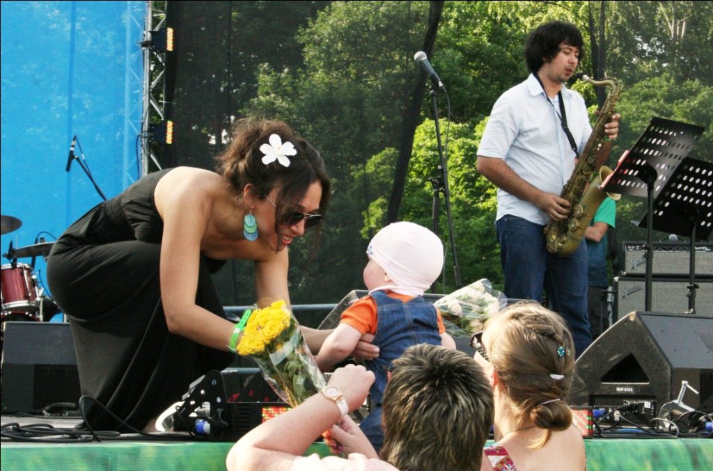 Женя Любич покорила пастельной нежностью и легко-ироничным заигрыванием с “залом на траве”, исполнив свои русские и английские песни. А популярную “Russian Girl” исполнила как всегда в обнимку с гавайской гитарой и подпеванием всего Масляного луга.