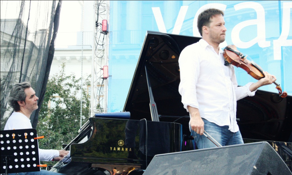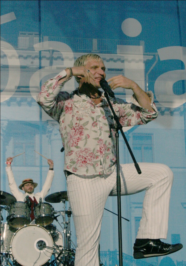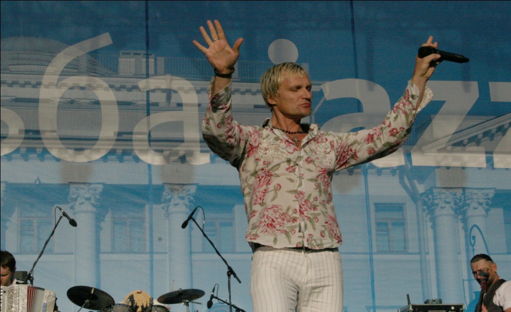 Тем временем в “Партере” с непередаваемым обаянием и нарочитой манерностью уже голосил Олег Скрипка, привезший с собой настоящее джаз-кабаре, реставрировавшее в глазах изумленной публики джаз 3о-х годов во Львове, где перемешались французский шансон, украинская лирическая песня и классический рок-н-ролл.