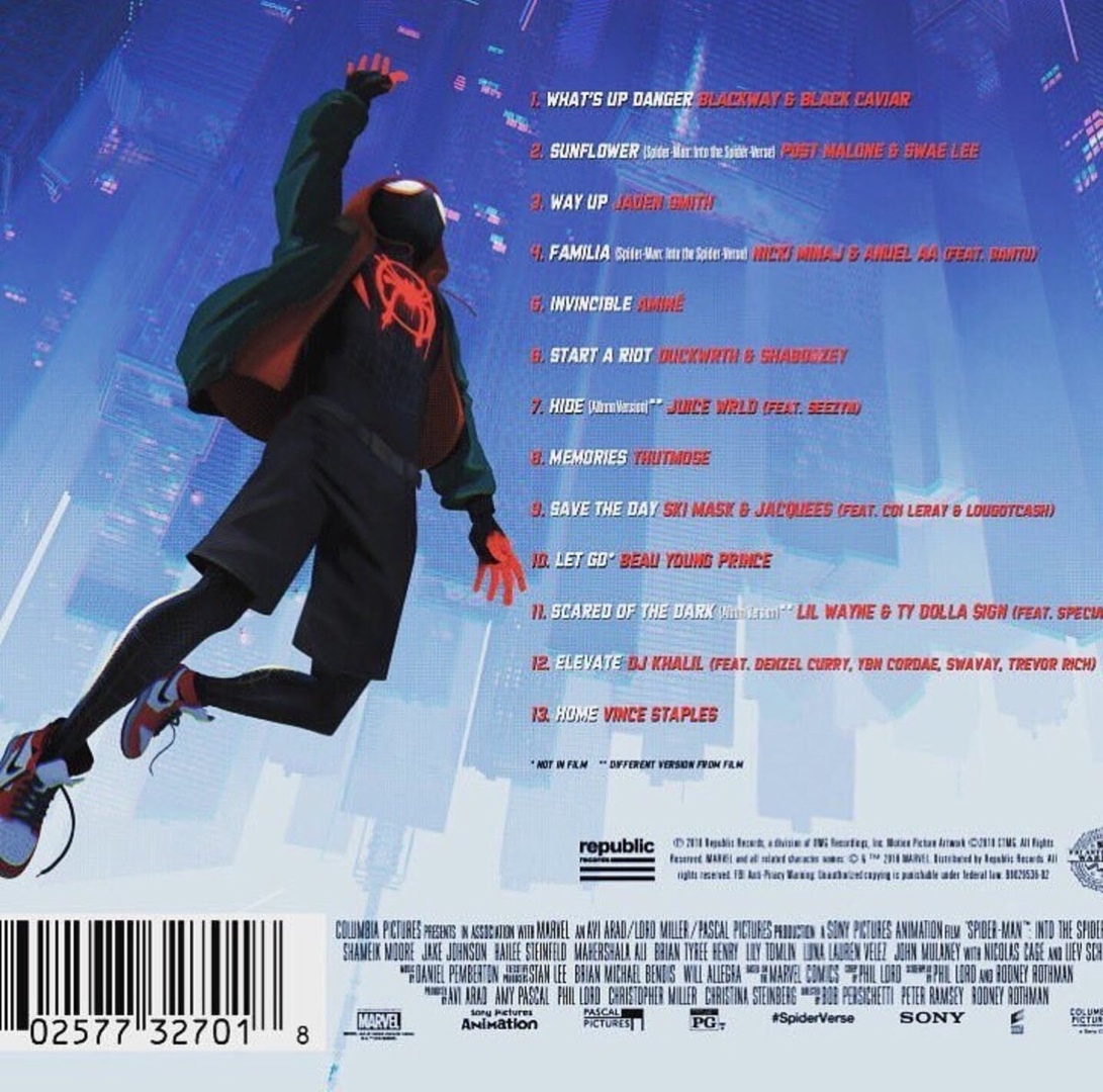 14 декабря состоится выход официального сборника саундтрека к мультфильму “Человек-паук: Через вселенные”. На пластинку войдут песни Ники Минаж, Post Malone Джейдена Смита и многих других.