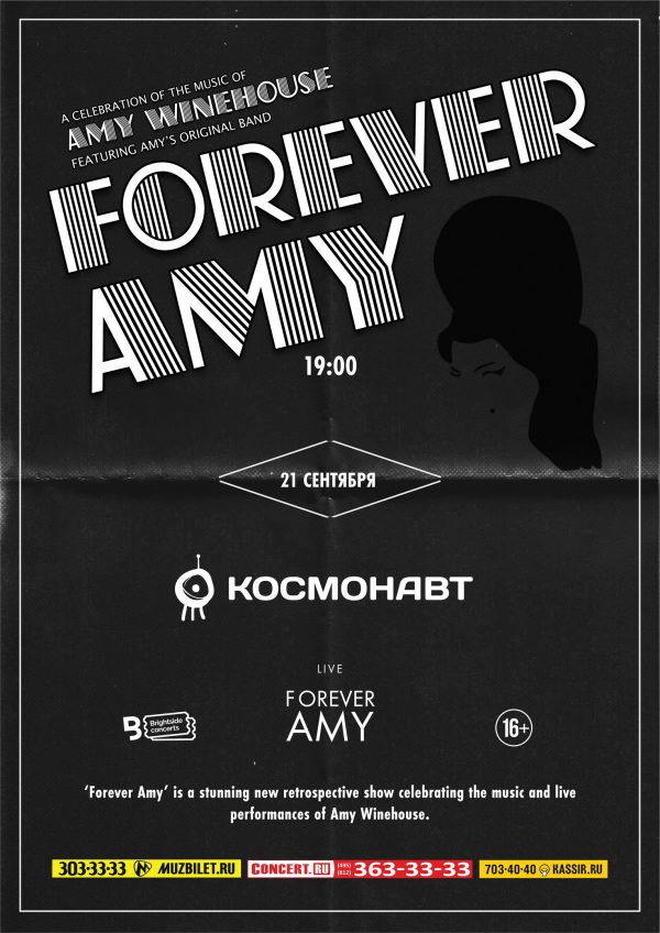 14 сентября британской певице Эми Уайнхаус исполнилось бы 34 года. Легендарная джазовая певица и соул-дива покинула наш в возрасте 27-ми лет в Лондоне, успев выпустить всего два студийных альбома, которые можно считать поистине «бриллиантом» современного соула и джаза. Девушка, покорившая миллионы сердец по всему миру и вдохновившая многих нынешних исполнителей и музыкантов, навсегда останется в памяти как искренняя, неповторимая и мега-талантливая птичка певчая. 21 сентября в 19:00 в клубе «Космонавт» в Петербурге выступит группа «Forever Amy». Проект, созданный музыкантами, которые в течение многих лет работали с Эми Уайнхаус и помогли одной из ведущих британских исполнительниц 2000-х найти свое неповторимое звучание. Он призван еще раз напомнить, насколько блестящей певицей была Эми — как в студийных работах, так и на концертах.