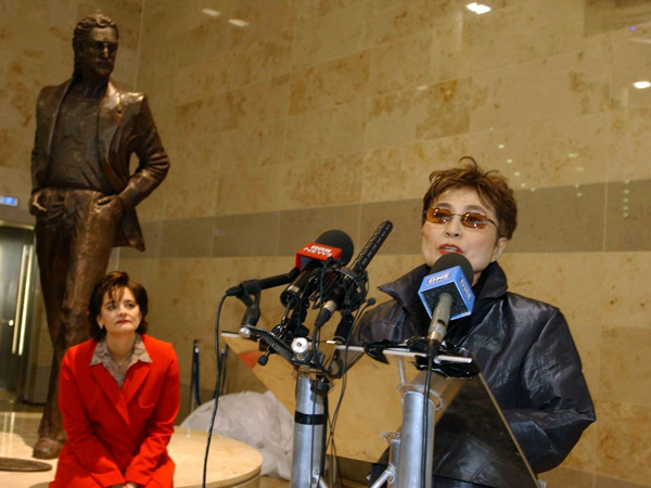 2002 — Йоко Оно приняла участие в торжественном открытии двухметровой бронзовой статуи Джона Леннона, которая была установлена в зале регистрации ливерпульского аэропорта «Джон Леннон». После ребрендинга аэропорта на его логотипе появился рисунок Леннона и слоган: “Above Us Only Skies” (строчки из песни “Imagine”).